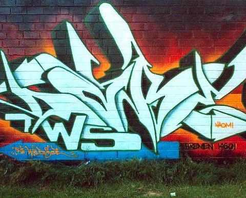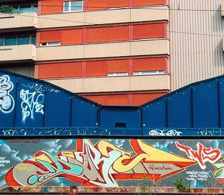 I had millions of influences in the beginning. It’s hard to tell who was the main influence to me… I just bited from what I saw and what I liked and it took a moment to get my own style. I guess it’s for everybody the same way. Nowadays you have graffiti magazines and millions of pieces around the world where you can get your influence. It means it’s easier to get a good writer but harder to find your own style, ’cause almost everything has been done before. My definition of style is my own handwriting: style starts with a tag or the way I write; the letters are an evolution of 15 years of practicing. But I always try to give the letters a readable shape… The color is just the decoration. I don’t like to fill my pieces with hundreds of colors until you can’t see the style anymore. A 2 or 3 color fading is enough for me; makes the style more outstanding. Even a one-color fill-in is good for me. I also like to play with the 3D blocks… Giving the style a kind of 3-dimension WITH outlines. It makes my styles more living and swinging…….