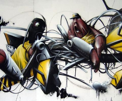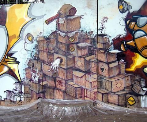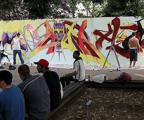 This year the festival took place over 5 days, with expos, movie showings, concerts, parties, and graffiti events. It was a bold project but the Rising Suns pulled it off and the result was an over-all quite satisfactory and enjoyable event. I will only comment on the graffiti, which was a nice mix of styles from around Europe, only maybe lacking some overseas flavour such as we had experienced in previous editions. The graffiti event of the 26th took place in the same location as in 2002 (Summer Session 4) but with noticeably alot less graff area being painted. The organization of the walls seemed a bit hectic and the painting took a slow start. The artists pulled through very nicely though, and here are the results of that day. Enjoy, and see you next year I hope!